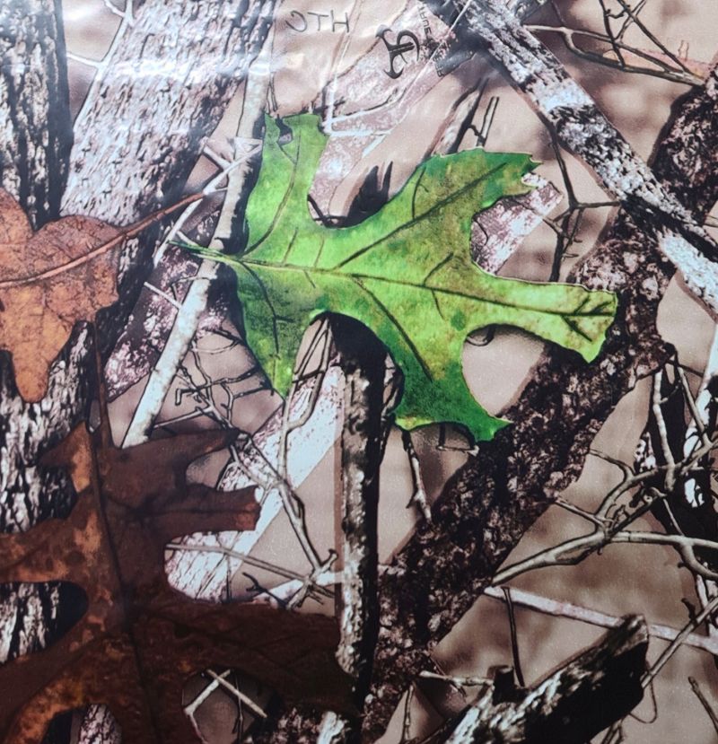 Folia do hydrografiki BC0148 przedstawia grafikę z motywem lasu i liści. Folia tego typu sprawdzi się doskonale jako kamuflaż. Można nią oklejać elementy różnego typu, począwszy od obudowy laptopa, po sprzęt stricte militarny.