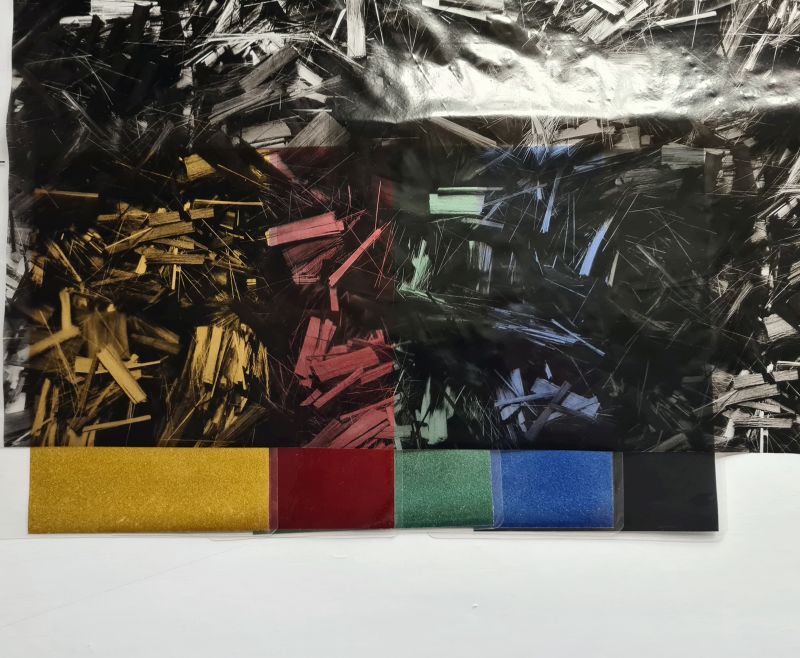 Folia do hydrografiki C0120E - cechuje się grafiką imitującą carbon w popularnej wersji forged w odmianie nieco większej niż poprzednie folie. Jest ona folią transparentną, a grafika różni się od większości carbonów, gdyż nie przypomina drobnych prostokątów, a raczej nieregularne "strzępki". Ciemny efekt carbonu uzyskamy po zastosowaniu ciemnej bazy grafit z dodatkiem metalicu.