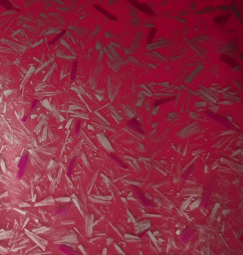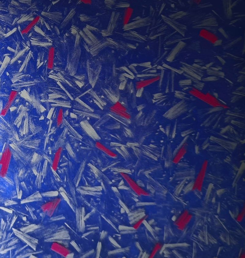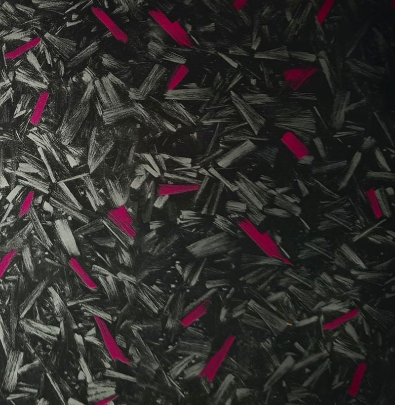 Folia do hydrografiki C0126D - Nowa odsłona carbonu, nazywana również forged carbon w jasnej kolorystyce z elementami czerwonych włókien. Grafika wyjątkowa i odróżniająca się na tle innych carbonów. Folia ta bez wątpienia przykuwa uwagę przez swój oryginalny i niebanalny print. Folia transparentna. Zdjęcie główne przedstawia folię na czarnym tle, na którym prezentuje się bardzo efektownie.