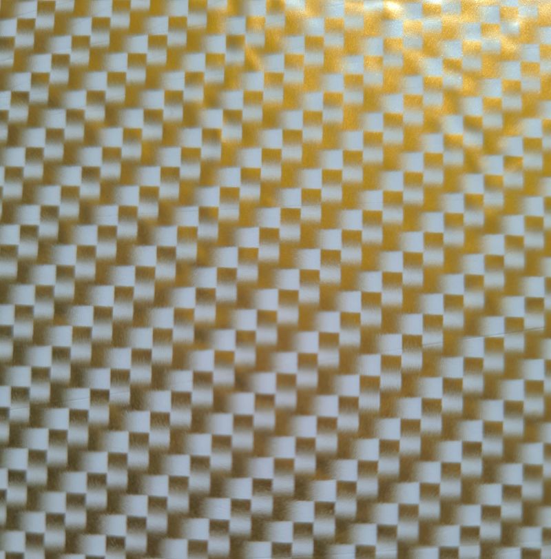 Folia do hydrografiki C022D - przedstawia motyw złotego carbonu. Splot włókna węglowego przez wzgląd na swój systematyczny, uporządkowany wzór idealnie nada się do wnętrz nowoczesnych i designerskich. Ten typ grafiki może stanowić świetny element ozdobny. Do wykorzystania w kuchni, jako np. element dekoracyjny lodówki. Za sprawą tej folii możesz odmienić wygląd najbardziej banalnego przedmiotu. Może być to rękojeść noża kuchennego, obudowa laptopa czy rower miejski. Jak każdy carbon, folia świetnie sprawdzi się w motoryzacji, czy przemyśle wojskowym.