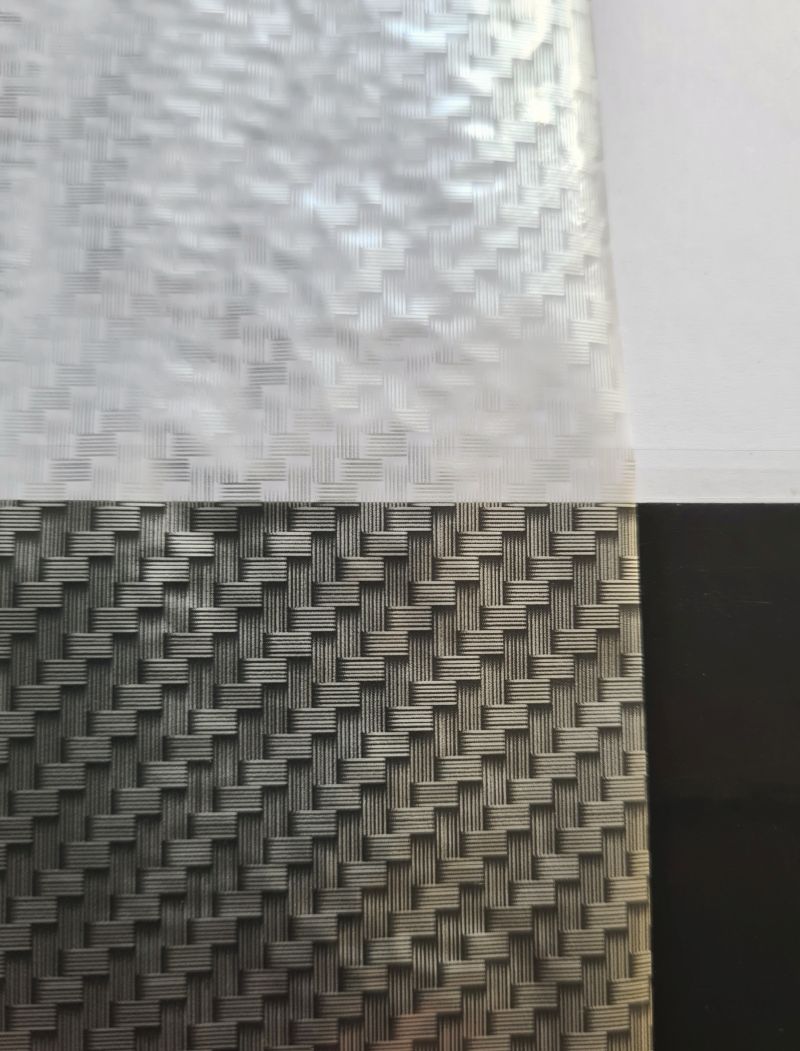 Folia do hydrografiki C039B - to produkt imitujący carbon. Folia ze srebrnym transparentnym przeplotem. Możliwość zastosowania różnokolorowego tła.