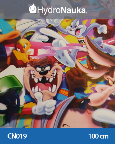 Folia do hydrografiki CN019 - to niezwykle barwna folia zawierająca grafikę stricte bajkową. Królik Bugs, kanarek Tweety, kaczor Duffy, diabeł tasmański czy kot Sylwester to bohaterowie dobrze znani nie tylko najmłodszym widzom. Bajka ta przyciąga przed telewizor nie tylko dzieci, ale i dorosłych. Kolorowa, zabawna grafika spodoba się małym fanom tego filmu animowanego. Folia z tym motywem do dobry sposób na oklejenie np. dziecięcego rowerka, kasku, deskorolki czy tabletu. Z powodzeniem może służyć jako dekoracja np. nocnej lampy, szafki czy parapetu. Animowany motyw z pewnością sprawi wiele radości najmłodszym.