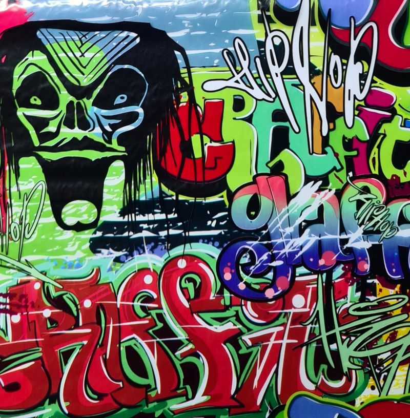 Folia do hydrografiki GL02A charakteryzuje się kolorowym transparentnym,designerskim nadrukiem, posiada wiele kolorowych napisów znanych z grafity. To doskonała opcja dla wszystkich miłośników nowoczesnego, młodzieżowego wzornictwa. Bogactwo kolorów, jakie można tu zobaczyć, doskonale będzie współgrać z wnętrzami pokrytymi intensywnymi barwami. Folia idealnie nadaje się pod jaskrawe tło.