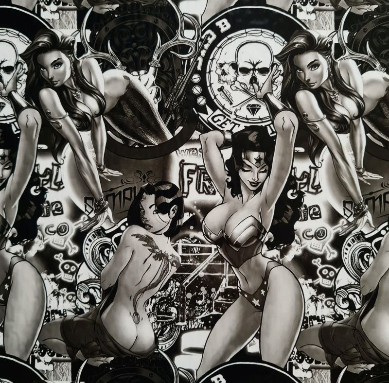 Folia do hydrografiki GM022 - czarno-biała grafika przedstawiająca motywy kobiet. Folia polecana dla miłośników charakterystycznych grafik, zwracających uwagę. Sprawdzi się w oklejaniu elementów motocykla itp.