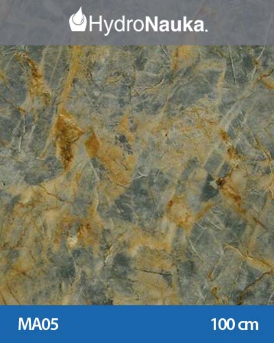 Folia do hydrografiki MA05 - cechuje się grafiką o strukturze żółto-szarego marmuru. Grafika przedstawia surową powierzchnię marmuru, udekorowaną różnokolorowymi plamami, podkreślającymi jej naturalne, tak charakterystyczne piękno. Zastosowane na folii połączenie barw odbiega nieco od standardowych, często spotykanych szarych marmurów. To właśnie czyni ją wyjątkową. Ta folia transparentna doskonale sprawdzi się w aranżacji wnętrz, jako piękny element dekoracyjny w nowoczesnych, ale też ekskluzywnie urządzonych wnętrzach.