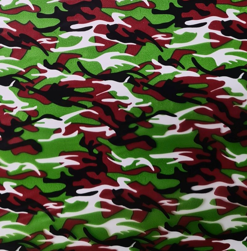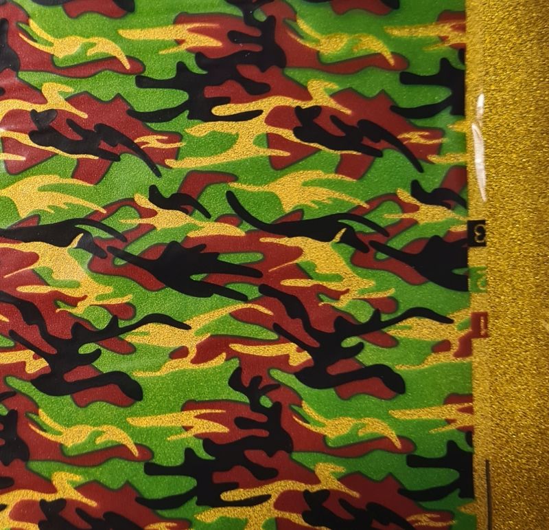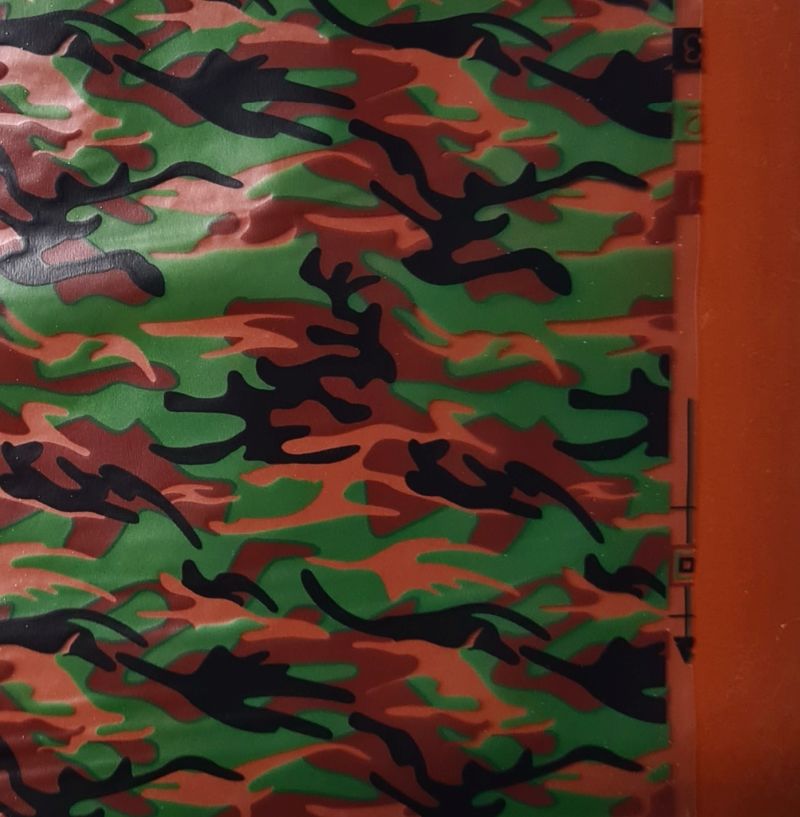 Folia do hydrografiki ML015 cechuje się nadrukiem w kolorze moro. Jest to motyw, gdzie kolorami dominującymi są odcienie zieleni, brązu i czarnego. Grafika przypomina różnobarwne plamy, które przenikają się wzajemnie. Biały kolor jest transparenty dając możliwe zastosowanie różnego tła. Motyw moro często wykorzystywany jest we wojsku jako doskonały element maskujący. Folia polecana jest szczególnie miłośnikom wojskowych klimatów. Będzie świetnym elementem dekoracyjno-kamuflującym. Świetna do oklejania np. broni, czy innego sprzętu. Auto terenowe w kolorach moro to z pewnością dobry pomysł na użycie tego typu folii. Sprawdzi się także w motoryzacji, do oklejania felg, czy innych elementów samochodowych.