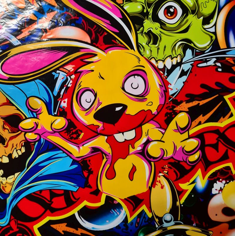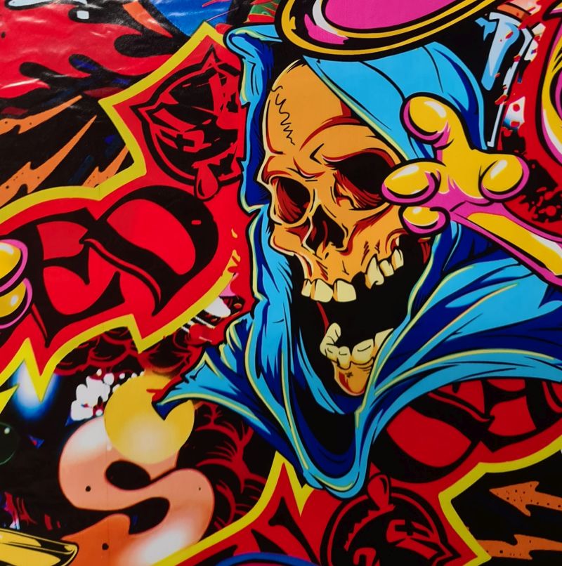 Folia do hydrografiki SKL011 cechuje się kolorowym nadrukiem z motywem animowanych czaszek itp. Grafika pełna dynamizmu i mocna w przekazie.