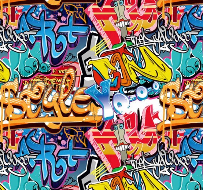 Folia do hydrografiki SL043 - to wielokolorowa grafika spotykana często na murach wielu miast. Kolorowe obrazy przykuwają uwagę. Folię można wykorzystać np. w pokoju nastolatka, do dekoracji ulubionych przedmiotów, urządzeń itp.