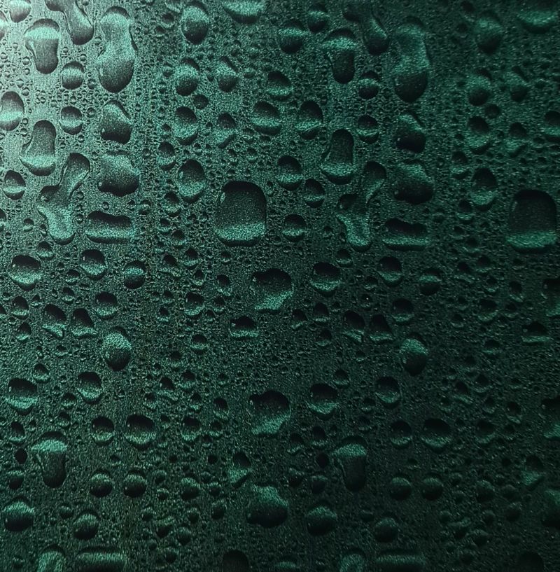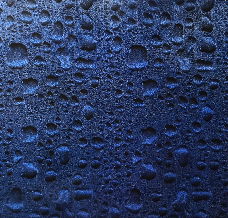Folia do hydrografiki WD03 - przedstawia monochromatyczną powierzchnię, na której znajdują się krople wody. Grafika posiada barwy oscylujące w odcieniach koloru szarego. Krople wody, które są idealnie odwzorowane mają nierównomierną powierzchnię i wyglądają, jakby osadziły się na szkle. Dodatkowo folia jest transparentna i podkładając odpowiednie tło możemy stworzyć wiele wersji tego wzoru, niektóre widoczne na pozostałych zdjęciach. Motyw z użyciem wody świetnie sprawdzi się w dekoracji np. elementów łazienkowych. Folia będzie stanowiła ciekawą dekorację np. roweru, kasku czy obudowy komputera.